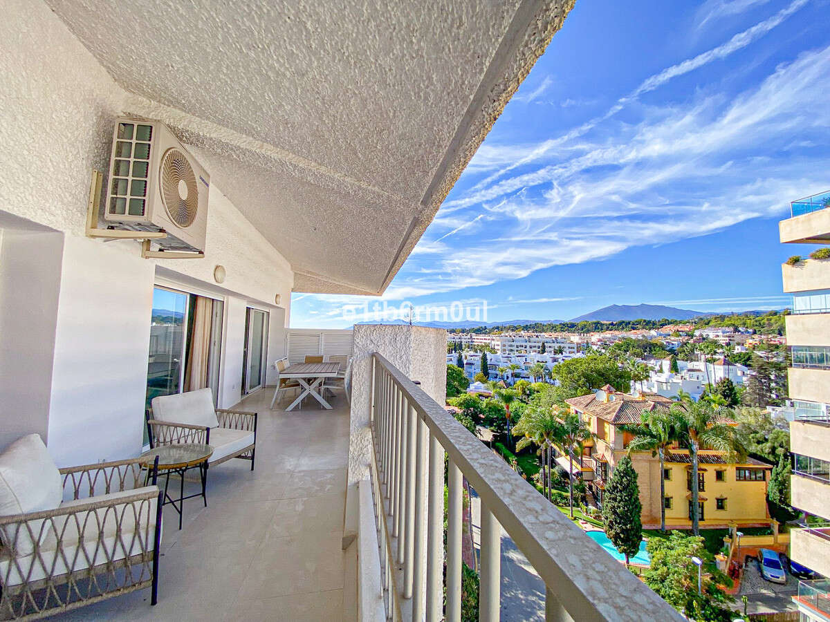 Beachside recently reformed, to a very high standard, apartment that is ready to move into. This fabulous bright, spacious, airy apartment is a perfect home or investment property. The location is ideal, only a three-minute walk to the beach and Marbella's Paseo Maritimo. A short walk into the centre Marbella and 5 minutes from Puerto Banus. With an open-plan layout, the fully fitted kitchen flows effortlessly to the dining area and living room. The two double ensuite bedrooms are distributed on either side of the living room area ensuring privacy and giving both bedrooms access to the spacious terrace. The terrace has a seating area and an outdoor dining area that comfortably seats six people and enjoys panoramic views over the Golden Mile and towards the mountains. The community has beautiful quiet gardens and two swimming pools. There is communal car parking for residents.