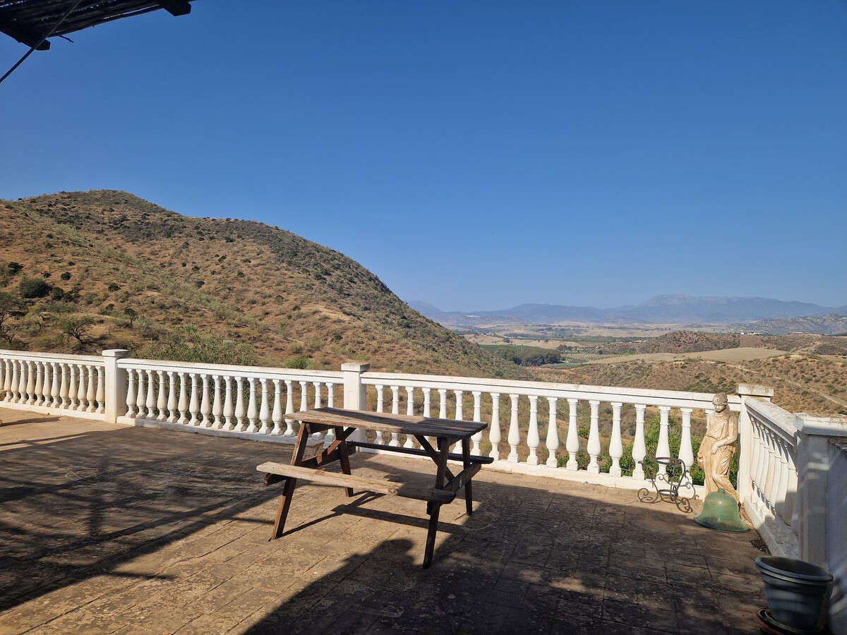 The plot is about 67.000m2 of hilly land. The road towards the house is all concreted and the last part is up hill and about 5 minutes from the main road of Estacion de Cartama to Pizarra, where also is a bus stop. The train station of Aljaima is about a 6 to 7 minute drive and Pizarra and Estacion de Cartama are 10 to 12 minutes.