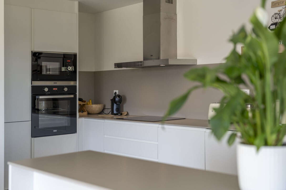 El apartamento cuenta con dos amplios dormitorios, ambos equipados con armarios empotrados que aportan gran capacidad de almacenamiento. La luminosa zona de salón-comedor, de concepto abierto, se integra perfectamente con una generosa terraza privada, ideal para disfrutar del café por la mañana o de una puesta de sol al atardecer. La cocina, de estilo contemporáneo, está equipada con acabados de alta calidad, pensada para disfrutar cocinando y recibiendo invitados.