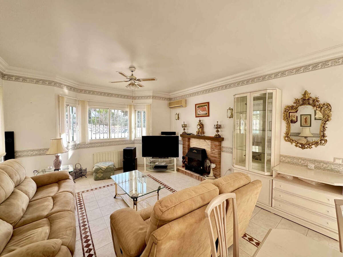 En el interior, la villa cuenta con un amplio salón-comedor con una acogedora chimenea, que se abre a través de grandes puertas de cristal a una terraza cubierta con zona de barbacoa, completamente cerrada con cortinas de cristal, perfecta para disfrutar del aire libre durante todo el año.
