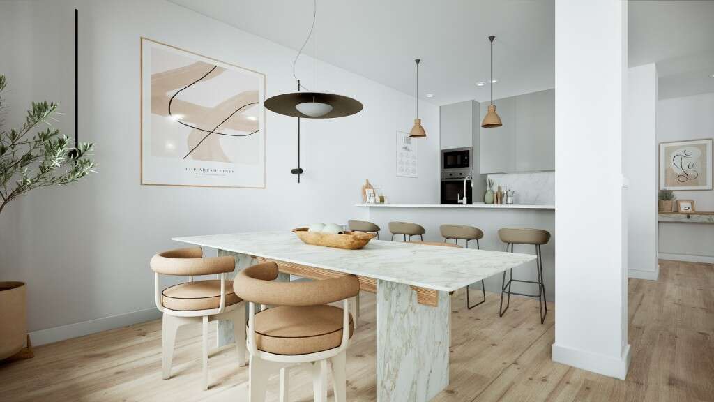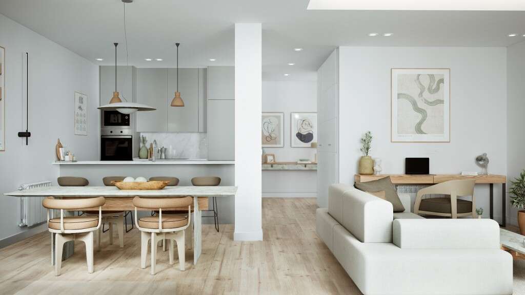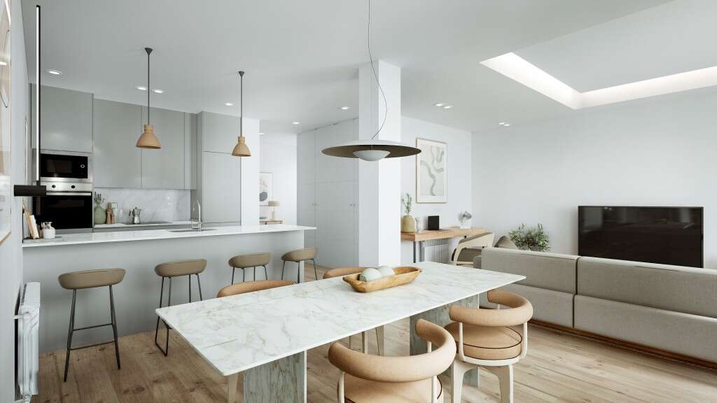 El inmueble contará con un gran salón con cocina integrada, creando una estancia principal amplia y muy luminosa, ideal tanto para el día a día como para disfrutar de reuniones y momentos de ocio.