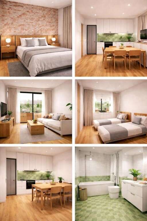 El proyecto ofrece dos viviendas de dos dormitorios y cuatro de tres dormitorios, todas ellas cuidadosamente diseñadas para proporcionar espacios amplios, luminosos y funcionales. Cada vivienda dispone de una generosa terraza que amplía la zona de estar hacia el exterior, creando un espacio ideal tanto para el descanso como para el disfrute en compañía.