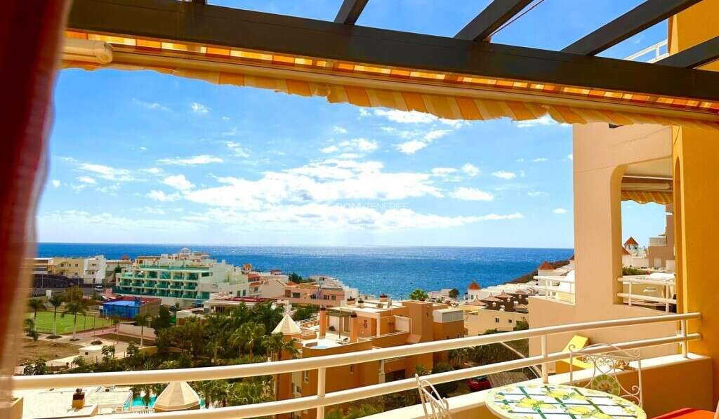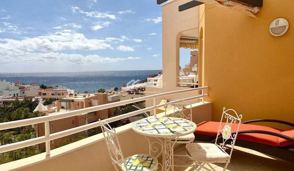 Dom Tenerife presents an exclusive opportunity: prime location in Oasis La Caleta. 3-bedroom corner apartment with panoramic ocean views. An exclusive three-bedroom corner apartment with magnificent unobstructed ocean views is offered, located in the prestigious high-end private residence "Oasis La Caleta," one of the most sought-after communities next to the Costa Adeje Golf Course. This distinguished complex is characterized by its manicured tropical gardens, heated pool area, tranquil atmosphere, and security, with private access for residents. Located in the best area of La Caleta, just a five-minute walk from a wide variety of fine dining beachfront restaurants and cafes, and just minutes from the golf course and the stunning Bahía del Duque beach. The 100 m² apartment offers a bright open-plan living room with a kitchenette, both enjoying abundant natural light and direct access to a private terrace with spectacular ocean views. The master bedroom features an en-suite bathroom with a bathtub, access to the terrace, and sea views. There are also two additional rooms that can be used as bedrooms or as a bedroom and office. The second bathroom is equipped with a rainfall shower with massage function. The home is decorated in an artistic style and vibrant colors, reflecting the taste of the current owner. However, our interior design department has developed a minimalist decor proposal for those who prefer a more sober and contemporary atmosphere. The apartment includes a private garage and storage room, with direct elevator access, ensuring maximum convenience, especially for shopping, strollers, or wheelchairs. This is a unique opportunity to acquire an exceptional property in an unbeatable location. Ideal for enjoying luxury residential living, a peaceful retirement, or unforgettable family moments. Contact us today to arrange a private viewing.