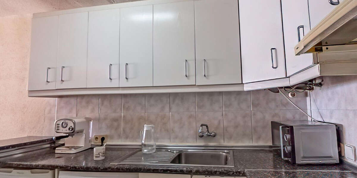 This apartment is located on the first line in Altea, but slightly set back from the main street, which provides more peace and quiet. The property is situated on the first floor and the building has a lift. The apartment has two bedrooms, one full bathroom, an open-plan kitchen, and a large, bright living room with plenty of natural light. The balcony has been incorporated into the living room and originally measured 14 m2, offering lovely sea views.