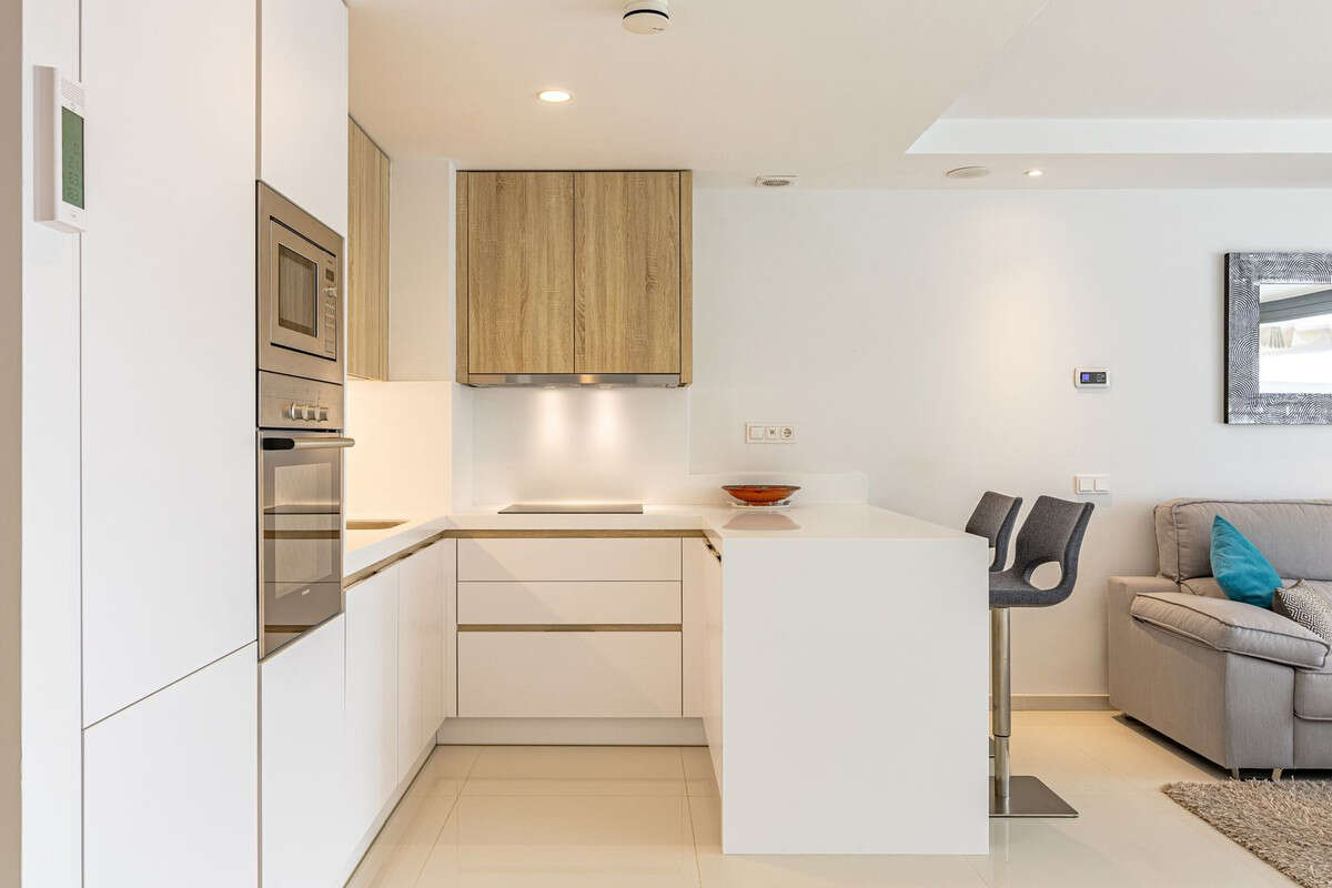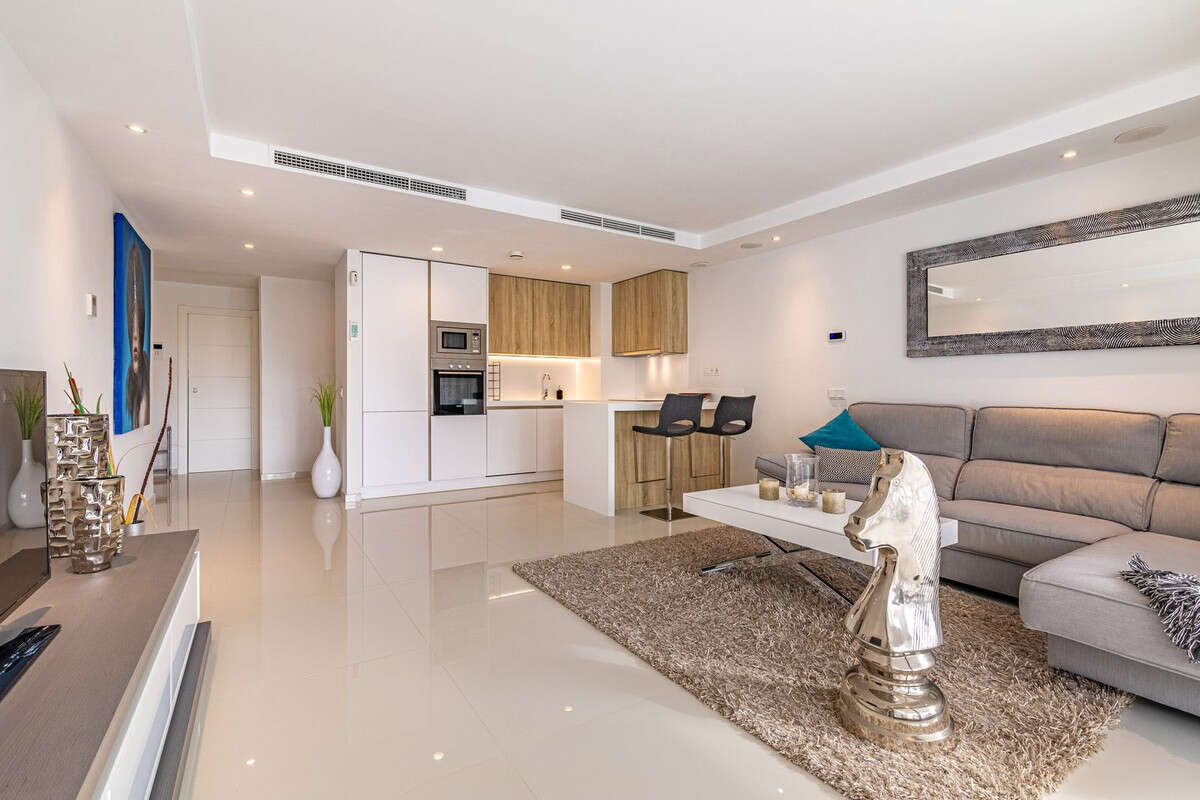The apartment features a spacious living area of 99m2, with marble floors throughout. The open plan design allows for plenty of natural light, creating a bright and airy atmosphere. The living room leads out to a private terrace of 30m2, perfect for enjoying the stunning views and outdoor dining.
