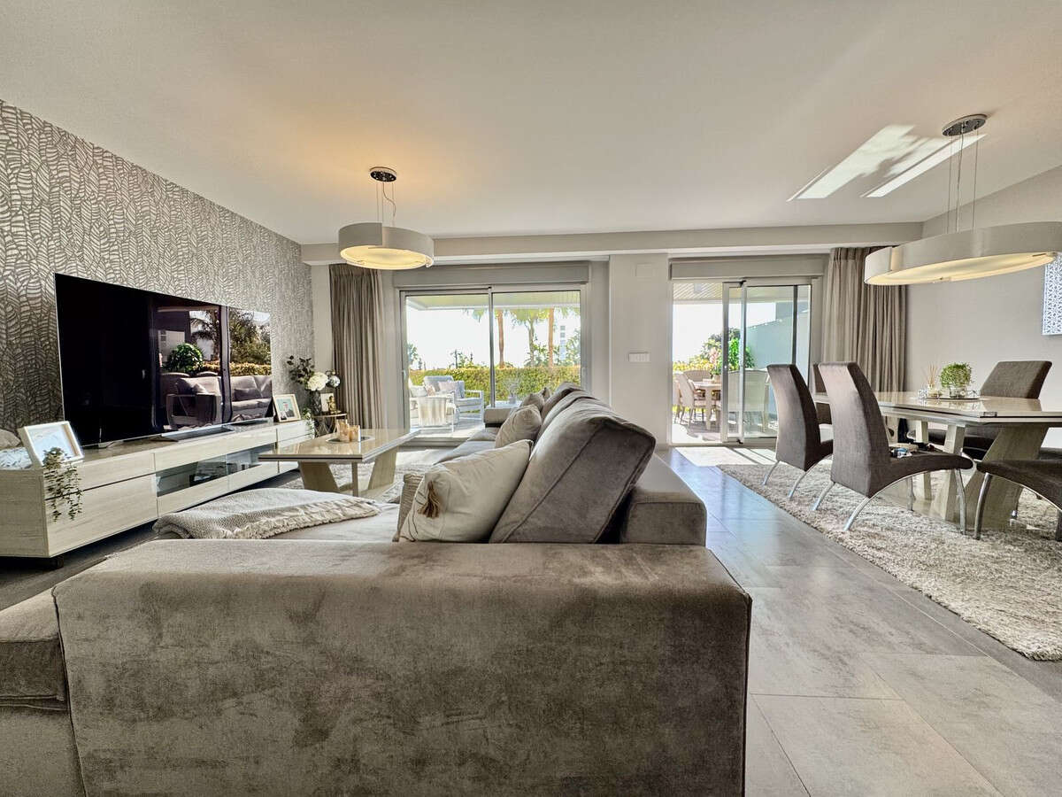 This superb, modern ground-floor apartment is located in Marques de Guadalmina, a sought-after gated community just 7 minutes from Puerto Banús. The apartment features a huge exterior terrace and a large U-shaped private garden surrounding the property, offering an ideal family lifestyle.