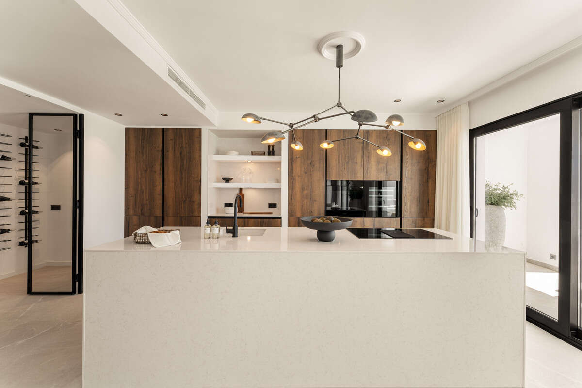 Although not directly on the coast, several popular beaches are only a short drive away. San Pedro de Alcántara offers a broad promenade lined with beach bars, while Playa del Saladillo is known for its long stretch of sand and water sports. Estepona's coastal area provides additional dining and leisure choices. Food lovers will enjoy the restaurants in Benahavís village, including Los Abanicos and the Amanhavis Hotel & Restaurant, both known for high-quality Andalusian cuisine. Shopping is easily accessible at La Cañada Shopping Center and Puerto Banús, where designer boutiques and international brands sit alongside entertainment and nightlife venues.