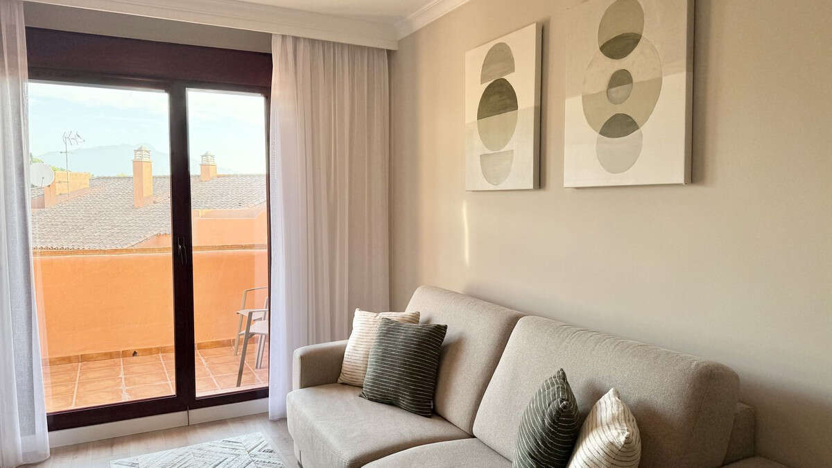 This fantastic 2 bed 2 bath apartment is fully furnished and tastefully decorated. A south-east facing private terrace overlooks the El Paraíso golf course, the La Concha mountain, and a communal swimming pool.