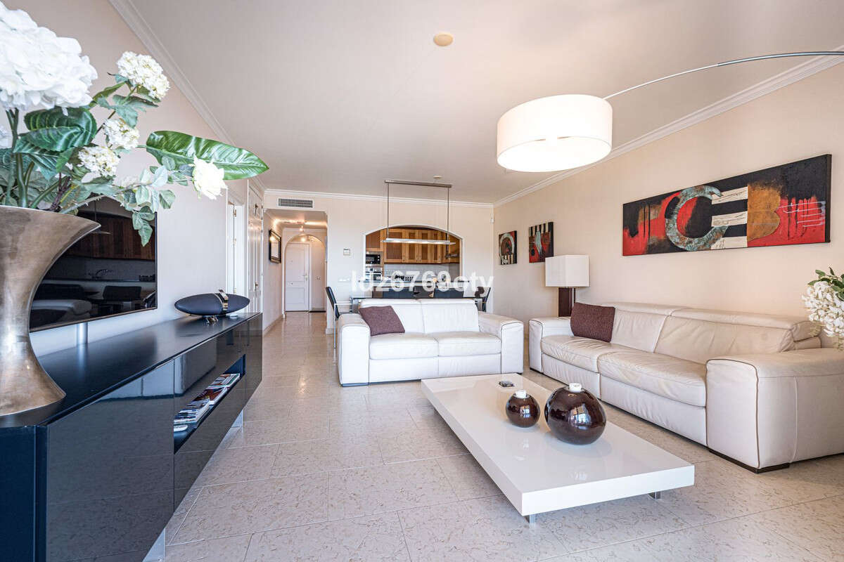 The 2-bedroom apartment, which is in excellent condition and has a living area of 90m2, faces South-West and is located on the 1st floor, which is accessible by lift from the indoor garage. The neutrally decorated apartment is fully furnished, equipped with air conditioning/heating and also has fast WiFi. The open and spacious kitchen offers various built-in appliances, including a dishwasher, oven, microwave, fridge/freezer and a ceramic hob. The dining/living room provides direct access to the spacious 25 m² terrace with seaviews and space for both sun loungers and a dining area for six people. The spacious master bedroom has built-in wardrobes, a television and direct access to the terrace. The en-suite bathroom has a Jacuzzi, shower, double sinks and a toilet. The second bedroom has built-in wardrobes and uses a separate second bathroom with a shower. The apartment also has a laundry room with a washing machine and dryer. The underground car park also has a private storage room and a parking space.