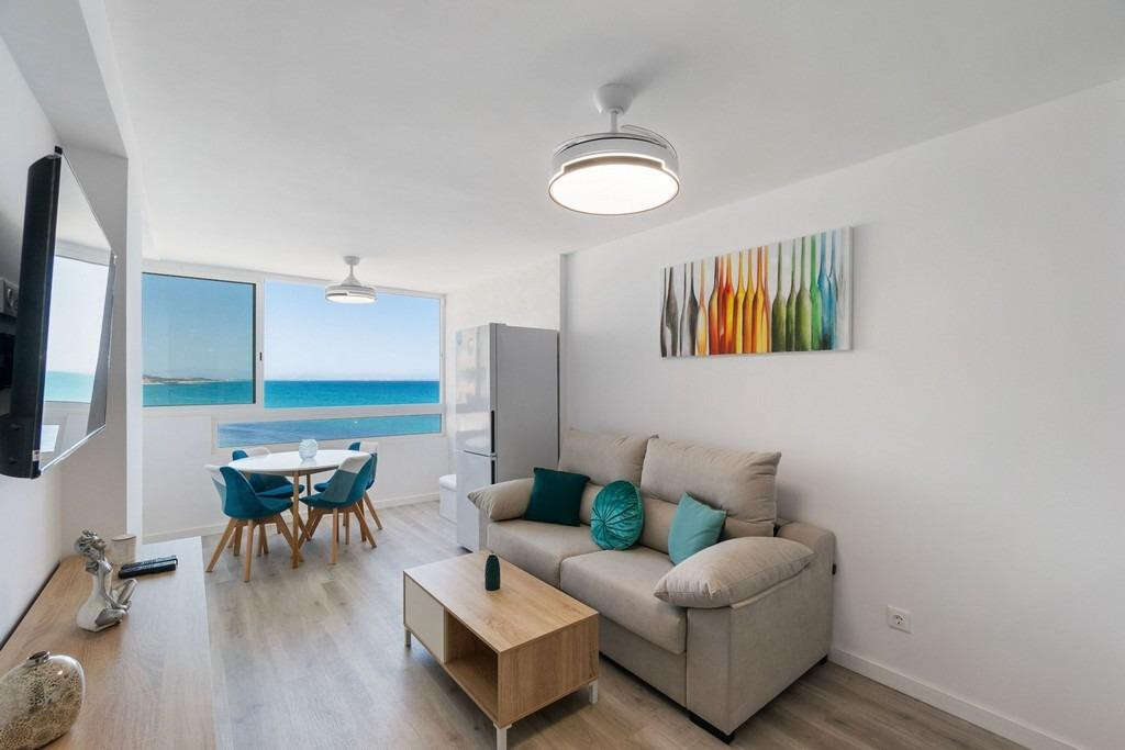 Apartment in a prime location in Cabo Cervera, just 50 meters from the beach. Recently renovated, with brand new furniture and appliances. Located on the third floor, northeast-facing. The 36 m² apartment has one bedroom, a full bathroom, an open-plan kitchen, and a living-dining room with magnificent sea views. The building has an elevator. A sports center with tennis courts and a paid pool is within walking distance. Surrounded by all amenities.