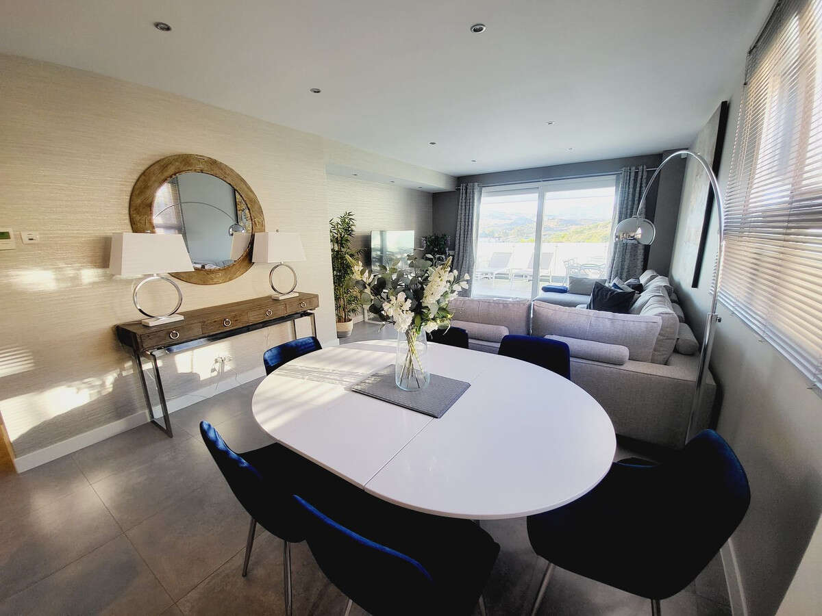 THIS LUXURY NEW APARTMENT IS PRESENTED IN IMMACULATE SHOW HOME CONDITION WITH HIGH QUALITY FINISHES THROUGHOUT. BRIEFLY COMPRISES: BRIGHT ENTRANCE HALLWAY WITH STORAGE SPACE, OPEN PLAN LOUNGE / DINING AREA AND SUPERB MODERN KITCHEN WITH INTEGRATED APPLIANCES, UTILITY ROOM HOUSING THE AEROTHERMAL TECHNOLOGY THAT RUNS BOTH HOT WATER AND AIR-CONDITIONING SYSTEMS, MASTER BEDROOM WITH AMPLE STORAGE SPACE AND EN-SUITE SHOWER ROOM, TWO EXTREMELY SPACIOUS AND LIGHT GUEST BEDROOMS WHICH BOTH HAVE FITTED WARDROBES AND SEA VIEWS, GUEST SHOWER ROOM AND FINALLY A GREAT SIZED TERRACE OVERLOOKING THE STUNNING POOL AND GARDENS WITH IMPRESSIVE VIEWS TO THE SIERRA DE OJEN BEYOND.