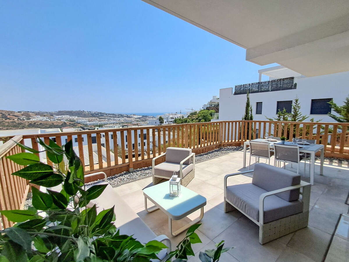 The property welcomes you at the entrance with a bright, modern open-plan kitchen, which in turn leads to the living-dining room. From the living room, you can access its splendid terrace with sea views, perfect for sun lovers who want to enjoy the outdoors in the Mediterranean climate. Everything with a subtle and elegant design, ideal for resting and relaxing.