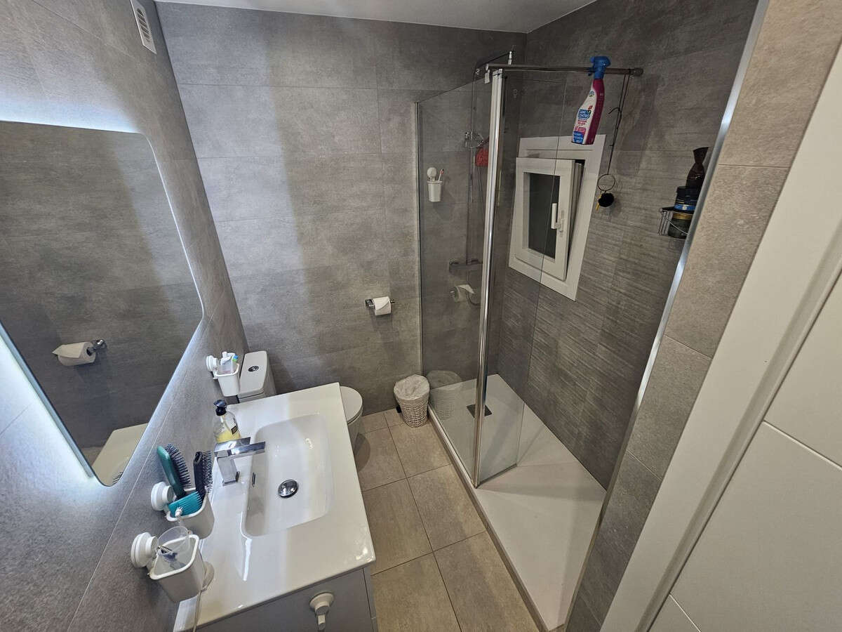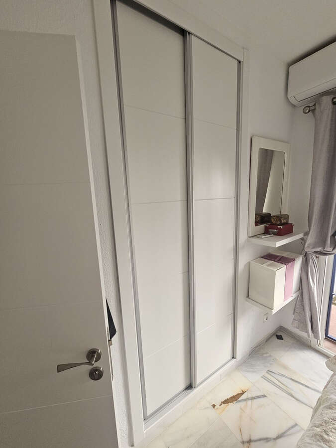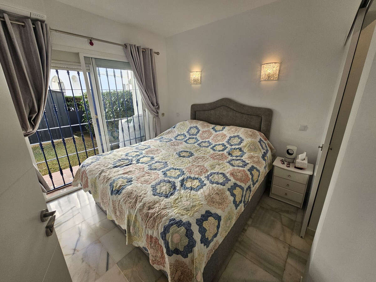 This recently renovated 2 bed 2 bath apartment has both a large terrace and private garden offering afternoon sun. All the windows, air conditioning, bathrooms and beds were renewed 3 months ago. Both bedrooms and the lounge have patio doors opening on to the garden and terrace. This apartment is set in a gated complex and there is also a communal pool and well-kept gardens.