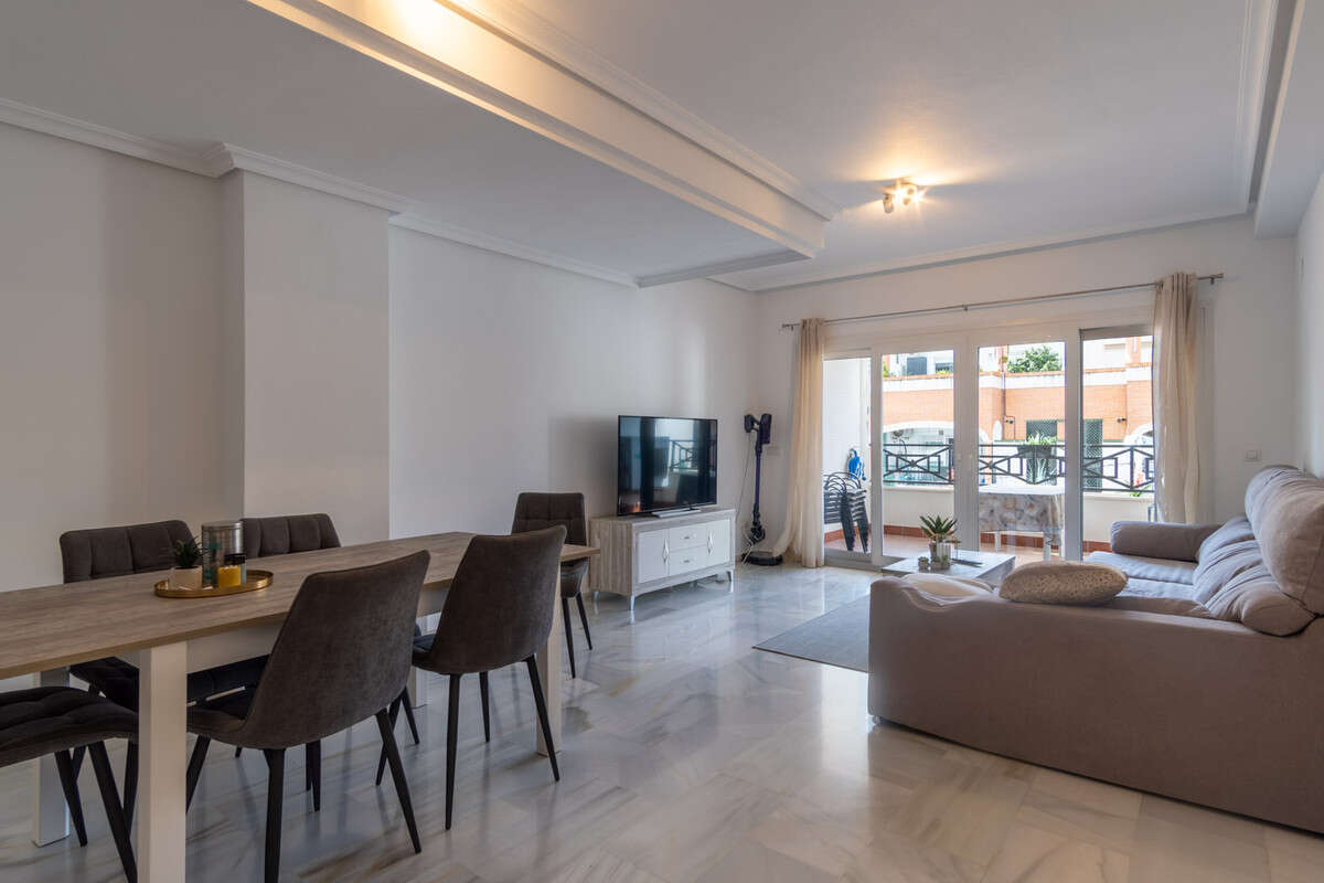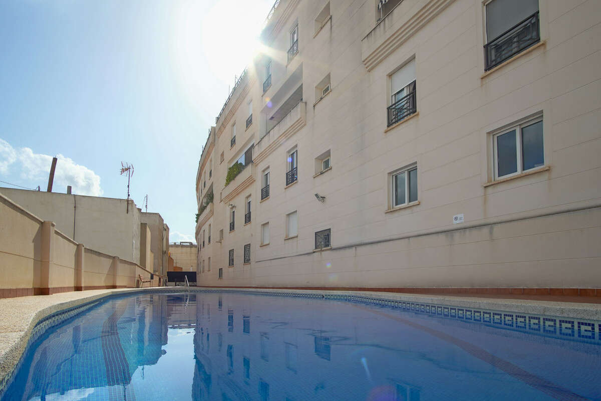 Just a few steps from the beach and in one of the most sought-after areas of Calpe, this bright second-floor apartment combines comfort, spaciousness, and an excellent location. The home features three double bedrooms, all with built-in wardrobes offering generous storage space, ideal for families and those seeking a second home by the sea. It also has two full bathrooms, perfectly equipped for everyday use. The kitchen, separate but semi-open to the living room, maintains a visual connection with the dining room without sacrificing functionality. The spacious living-dining room becomes the heart of the home, with direct access to a pleasant terrace, perfect for enjoying the Mediterranean climate year-round. The building also has a communal pool, ideal for cooling off in the warmer months and relaxing without leaving home. In addition, the flat also features a parking space and a storage room. A unique opportunity to live close to the sea, in a peaceful setting yet with all amenities close at hand.