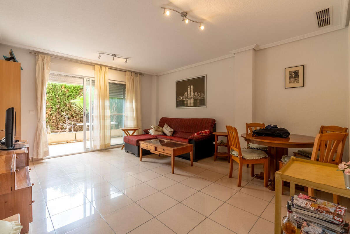 Excellent apartment for sale in a building with 12 apartments, on the ground floor with its own large plot 100 meters from the best beach on the Costa Blanca - San Juan. 109 square meter house with three bedrooms, large living room, two bathrooms - one incorporated into the master bedroom -, entrance hall and a kitchen with a covered gallery for the washing machine and dryer. The house is all exterior - bordered by the large terrace - except for the party wall of the living room and kitchen. The plot has 102 square meters and a 17-meter garden for exclusive use, along with another terrace that connects with the living room of the house to which it can be easily incorporated.The house is located less than a hundred steps from Muchavista beach and has two transport services that facilitate travel to Alicante and other coastal cities: the Tram with the Carrabiners stop - 100 meters away - and an urban bus at the same door of the building that connects with the Alicante Central Market, the Plaza de los Luceros and the AVE station.Nearby there is everything you need for a comfortable life: 24-hour pharmacies, supermarkets, restaurants, nurseries and schools. The center of Alicante is 30 minutes away by car.The apartment is perfect for both permanent housing and vacations.