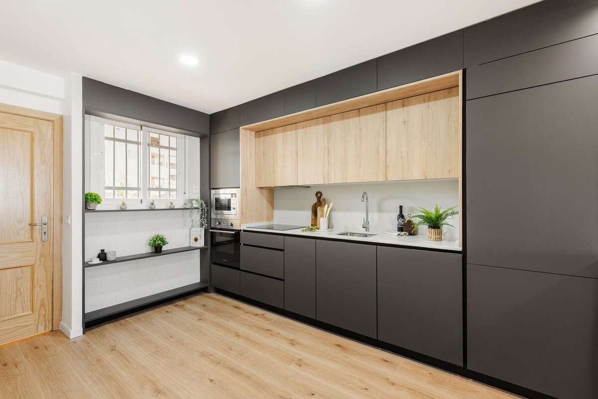 A very special feature is the possibility of converting the balcony into a small enclosed space thanks to folding glass panels, enabling year-round use regardless of the season. Additionally, the apartment has windows at both ends, creating a pleasant natural airflow to cool the entire space.