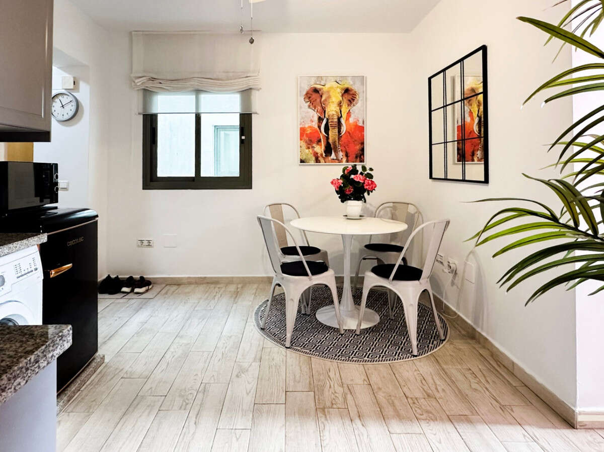 The apartment is designed in a comfortable and functional space that combines a living room and bedroom with access to a balcony overlooking the historic center of Málaga. Additionally, it has a fully equipped separate kitchen/dining area. There is a complete bathroom with a shower.