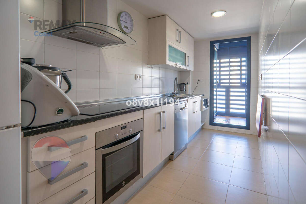 The property stands out for its large, fully equipped kitchen with integrated utility/laundry area, as well as a generous living-dining room with air conditioning and open views. The layout allows the possibility of opening the kitchen into an open-plan concept, if desired.