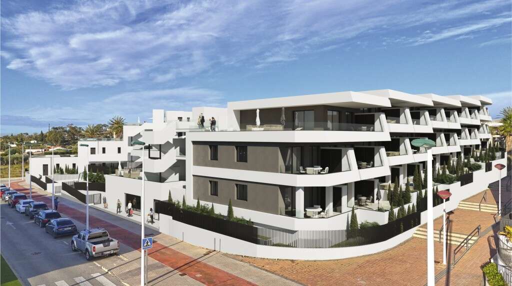 Los exteriores de estas viviendas han sido diseñados para ofrecer un espacio de relajación y disfrute al aire libre. Cada propiedad cuenta con una terraza privada, ideal para disfrutar del clima mediterráneo. Además, las plantas bajas disponen de jardines privados, proporcionando un espacio verde personal para los amantes de la naturaleza. Los áticos, por su parte, incluyen un solárium, perfecto para tomar el sol en privacidad. La cercanía al mar, a solo 1 kilómetro, permite disfrutar de vistas espectaculares y de la brisa marina.