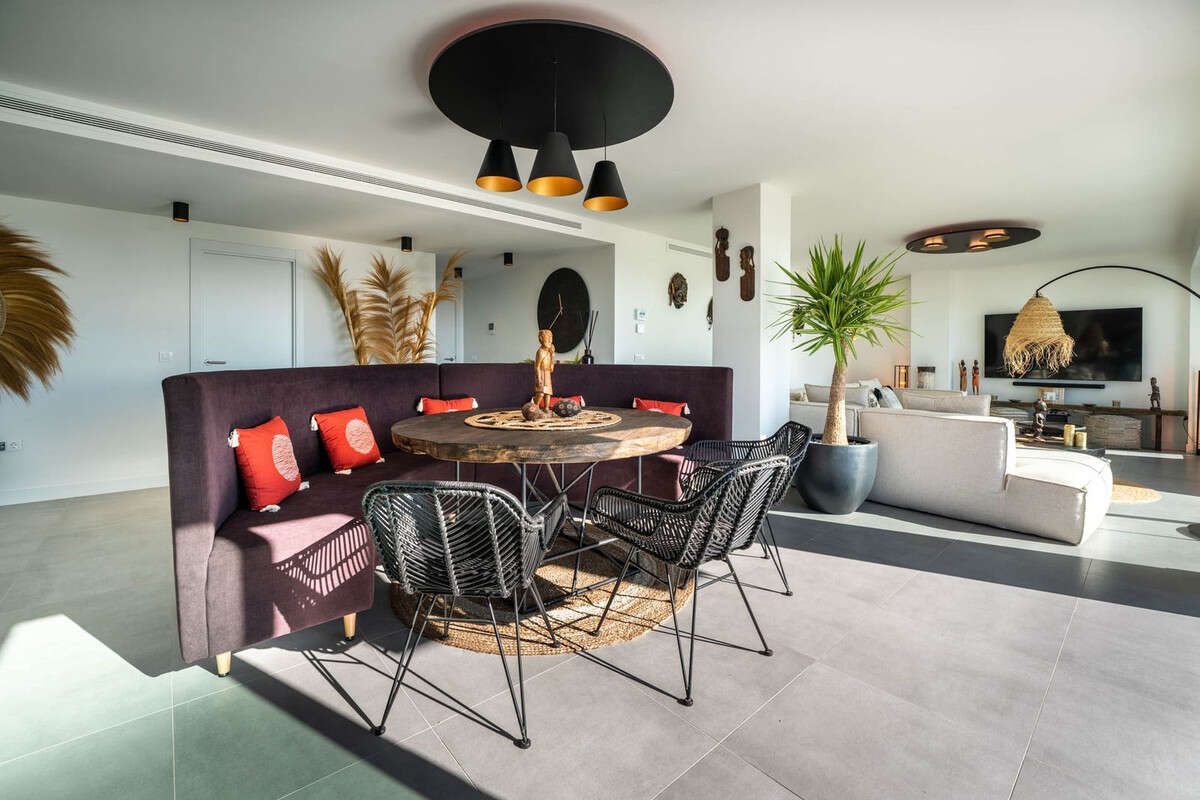 This newly built 250m² south-facing apartment blends modern design with relaxed Boho charm. Featuring 3 spacious bedrooms, each with its own ensuite bathroom, and a 70m² terrace offering breathtaking 180° sea views of Gibraltar and the Atlas Mountains, this is a rare find.