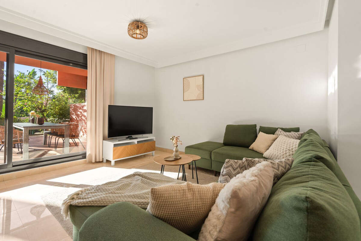 Discover the perfect coastal retreat in this spacious ground floor apartment located on the sought-after New Golden Mile, just a stone's throw from the beach(100 meters). With a generous total area of 163 m², this property features two well-appointed double bedrooms and two large bathrooms, making it ideal for families or those seeking extra space. The exquisite living and dining room opens to two semi-covered terraces, perfect for enjoying the Mediterranean climate.