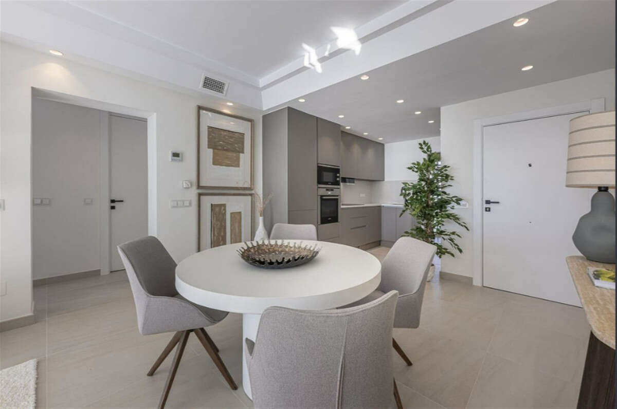 The apartment enjoys a southwest orientation, filling the rooms with natural light throughout the day. It comes fully furnished and features fitted wardrobes, a fully equipped kitchen, and modern climate control systems — including air conditioning (hot and cold) and central heating — ensuring year-round comfort. The gated complex also provides enhanced security with an entry phone system, making this an ideal property for anyone seeking a luxurious and secure beachside residence.
