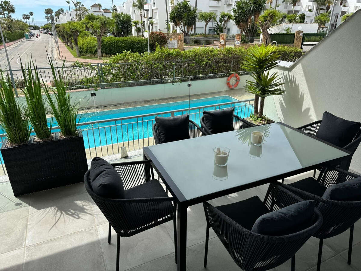 Two-bedroom apartment, fully furnished and equipped in a modern style, with furniture, appliances, and electronics. It's 250 meters from the sea and the promenade stretching all the way to Estepona. The modern building offers proximity to restaurants, a school, paddle tennis courts, Mercadona, and Lidl, all within a 300-500-meter radius. The nearest golf course, with a practice base and a driving range equipped with Trackman, is 6 km away - Atalaya Old and New Courses. A garage space with electric car charging and a storage unit is available. An outdoor swimming pool with sun loungers and a separate entrance is available. The only new, unique building in this area offers sea views, and all furniture, appliances, and accessories are included in the price. Intelligently controlled LED lighting, custom-made units, and completely updated bedroom and living room decor compared to the original build. The wardrobes, cabinets, and kitchen units have been modernized. A great base for exploring all the area's golf courses and attractions. Quiet and peaceful neighborhood
