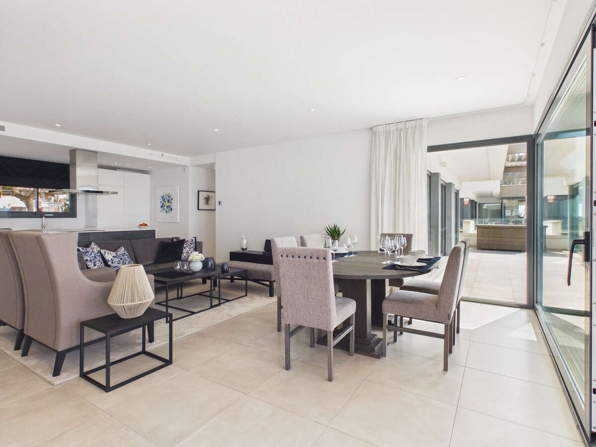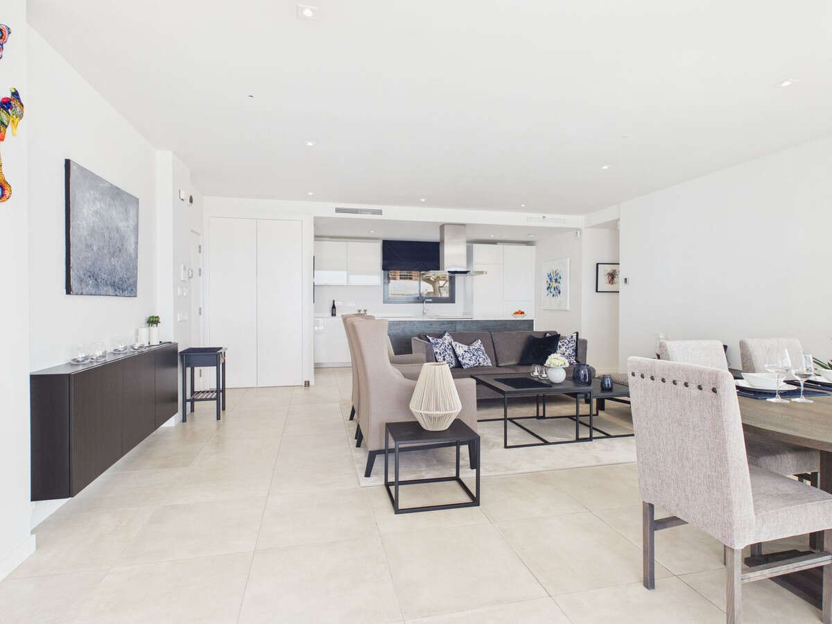 The generous terrace is ideal for both sunbathing and entertaining, with covered areas providing shade and comfort throughout the day. Completed just five years ago, the apartment showcases high-quality finishes and contemporary design, including a stylish open-plan kitchen that perfectly balances elegance and functionality.