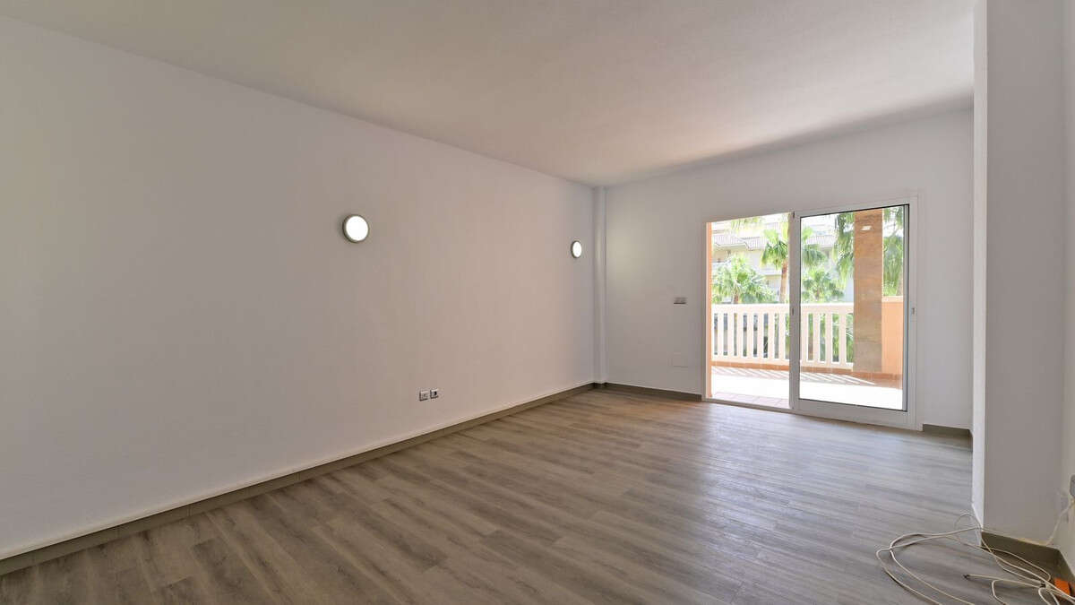 The property has two spacious bedrooms. The master bedroom has an en-suite bathroom, while the second bedroom has been enlarged to incorporate a covered terrace, offering additional space perfect as a study area, office or for placing an extra bed.