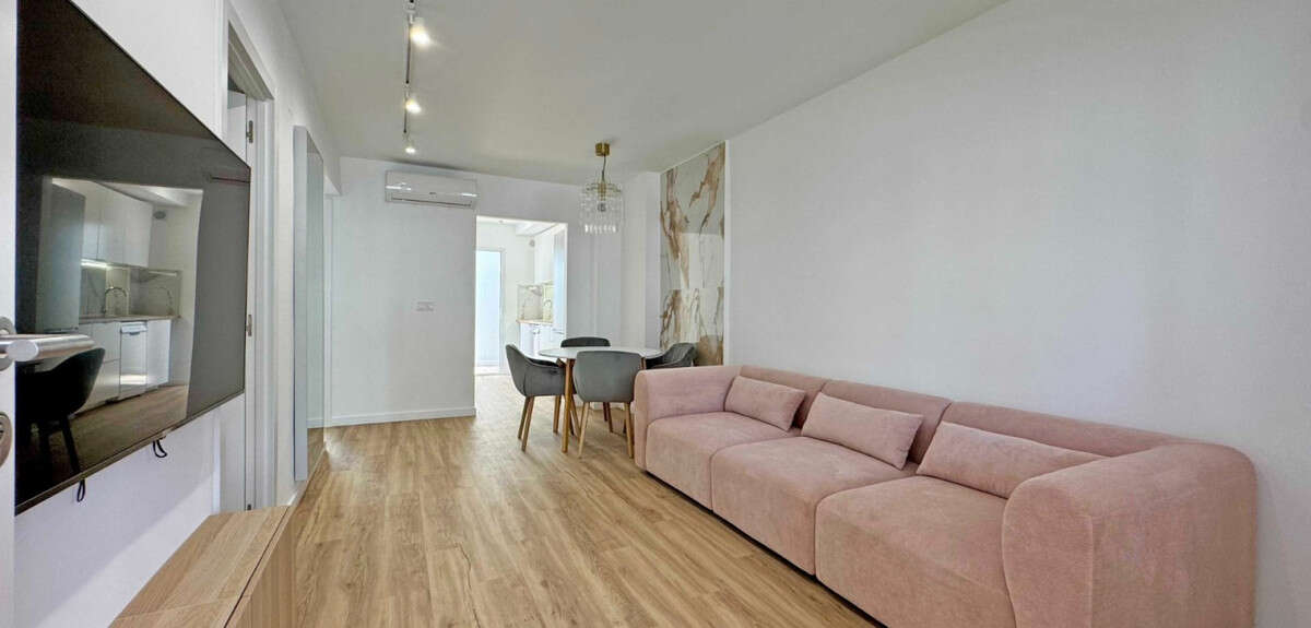 Inside, the apartment features 2 bedrooms, 1 bathroom, and a bright, open-plan layout with tasteful designer furnishings and modern finishes throughout.