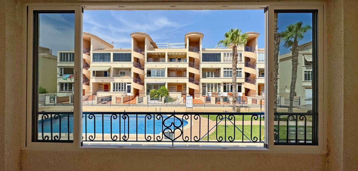 Situated in the sought-after area of Los Altos, Orihuela Costa, this first-floor corner apartment offers all-day sun, tranquil views over green areas, and access to two well-maintained communal pools.