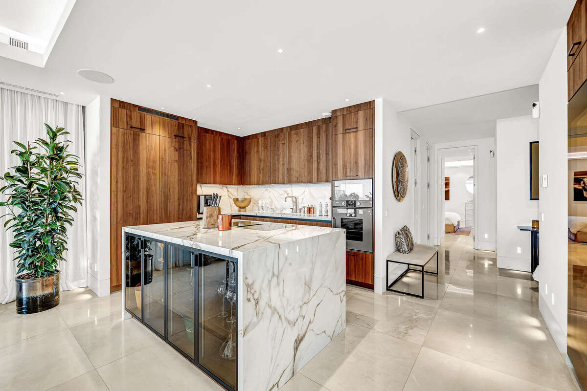 The fully equipped kitchen is a chef's dream, fitted with top-of-the-line Gaggenau appliances and an stylish drinks cabinet, offering the perfect setting for entertaining. The open-plan design flows seamlessly into the expansive outdoor area—one of the apartment's most impressive features. The spacious terrace offers a fully equipped barbecue area, a luxurious Jacuzzi, and breathtaking views, creating the ideal space for relaxation or hosting unforgettable gatherings in the Mediterranean climate.