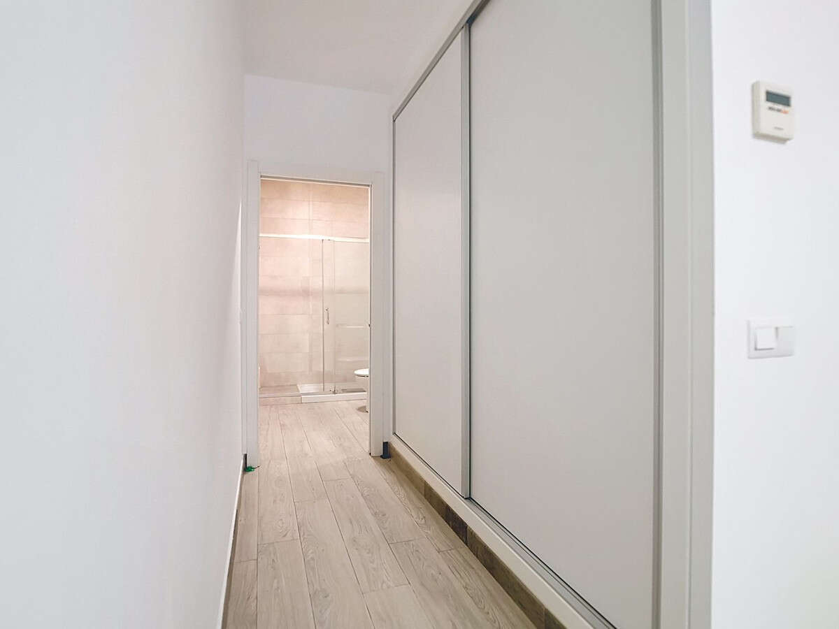 The apartment's design includes a spacious entrance, wooden floors, and painted walls that provide a modern and elegant touch. The kitchen is equipped with quality appliances, such as a refrigerator, oven, washing machine, and dishwasher, making your daily life easier. All apartments feature a master bedroom with a double bed and a desk, ideal for working from home.