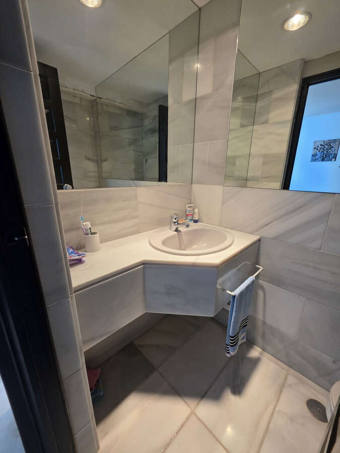 Unique opportunity to purchase two apartments which were united into one big apartment in the famous Torre Real in Marbella. Offering a total of 120m2 living and 98m2 terraces all around. Due to the location on one of the last floors of the building, you enjoy stunning views to the sea, views along the coast and to the mountains. The property comes with two private parking in the underground garage and a storage room. The gated community is also very special with large community grounds, gardens, pool areas and two tennis courts. The building offers a lift and a concierge service. About 10minutes from the historic part of Marbella town and only 45 minutes from the Málaga airport and city.