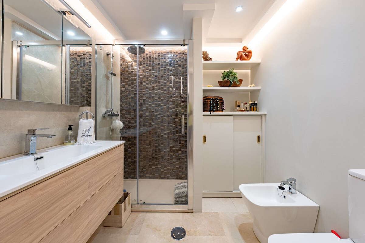 Upon entering, we find a hall that leads to the modern and functional separate kitchen with access to a terrace that surrounds the entire house. Two spacious bedrooms and two full bathrooms. Large living-dining room with access to the south side of the terrace, perfect for relaxing throughout the day as it has exceptional views of the Parque de la Constitución and absolute tranquillity and privacy. The property originally had three bedrooms and has been easily converted into a two-bedroom space, providing more space in the living room.