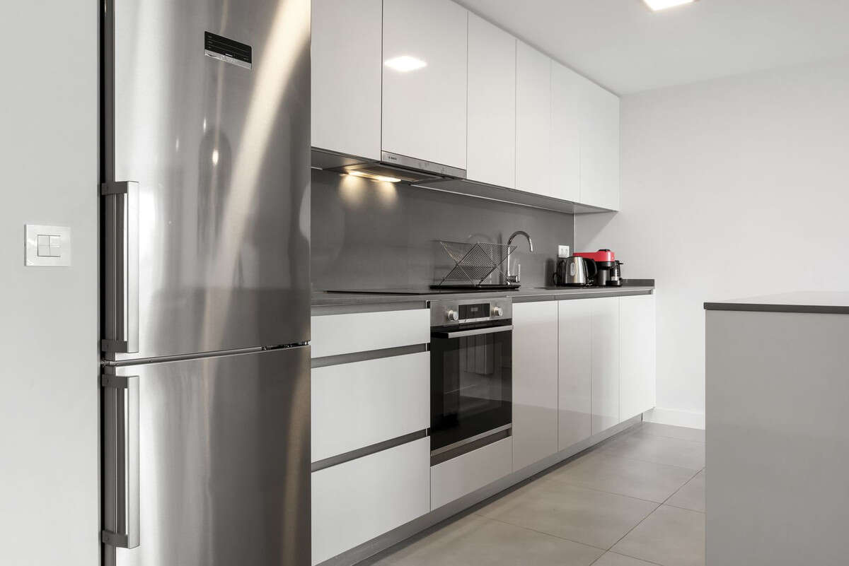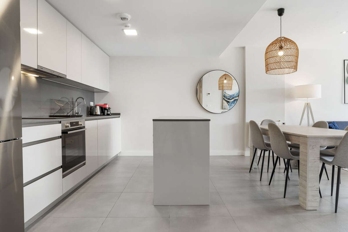 As you enter the apartment, you are greeted by a bright and open-plan living and dining area, seamlessly connected to a generous private terrace – ideal for relaxing or entertaining while enjoying views of the surrounding greenery and sea. The fully fitted kitchen comes equipped with high-end appliances and a sleek contemporary design.