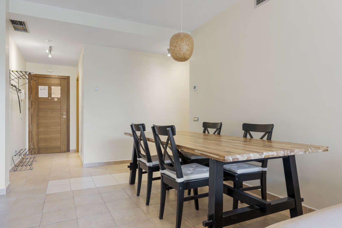 This beautiful apartment is located in the popular Alamar with walking distance to La Cala city centre and the beach. It features 2 bedrooms, 2 bathrooms, a utilityroom, a modern kitchen, a large livingroom with a sofa-bed and a large private terrace with a couple of meters to the pool. There is a padel court available for you in Alamar for free.