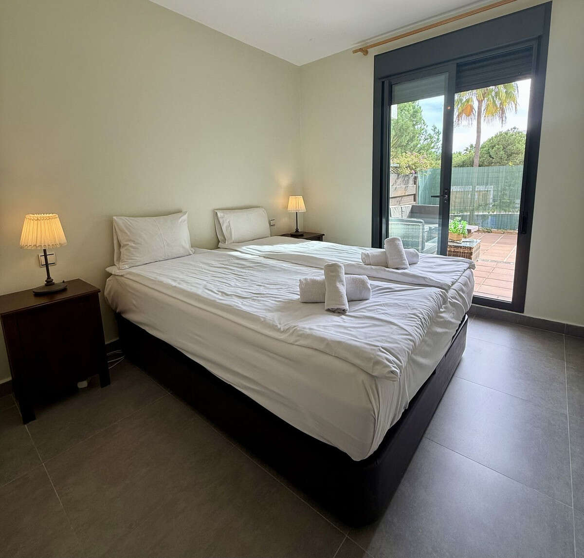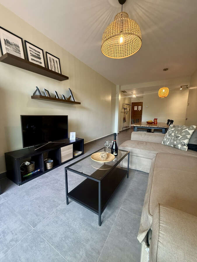 This beautiful apartment is located in the popular Alamar with walking distance to La Cala city centre and the beach. It features 2 bedrooms, 2 bathrooms, a utilityroom, a modern kitchen, a large livingroom with a sofa-bed and a large private terrace with a couple of meters to the pool. There is a padel court available for you in Alamar for free.