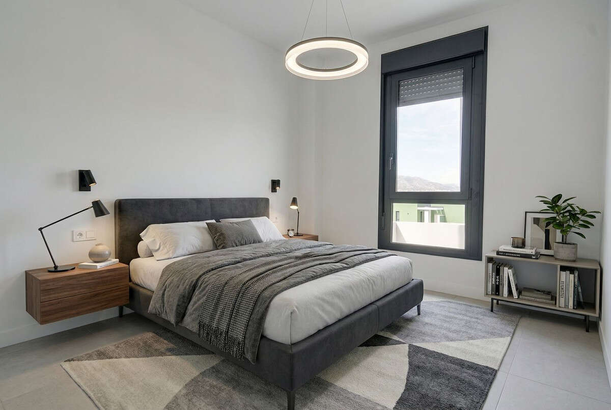 Inside, the property offers a bright, modern open-plan design with a spacious living area and a fully fitted kitchen complete with high-quality appliances. Large sliding doors connect the interior seamlessly with the terrace, maximising natural light and indoor-outdoor living. The master bedroom features an en-suite bathroom and direct access to the terrace, while all bedrooms include fitted wardrobes and elegant finishes such as large-format porcelain flooring. The apartment also benefits from two full bathrooms and an efficient hot and cold air conditioning system.