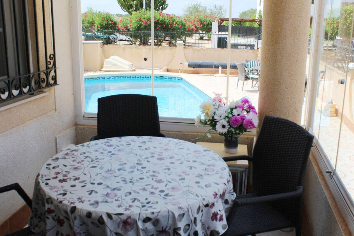 This beautiful 2 bedroom ground floor apartment with private garden and swimming pool is located in Sol Golf I - Pau 8, Villamartin. Just a short walk to the famous Villamartin Plaza and golf course. The apartment features a spacious 143m2 tiled low maintenance garden with a private 10x5m swimming pool, BBQ and a covered terrace with glass curtains, offering an ideal all-year-round outdoor living space. Inside, the property offers a bright and inviting lounge with feature fireplace, leading through to a modernised kitchen with separate utility room and shower room, along with direct access to the garden and an electric blind for added comfort. A small hallway leads to two double bedrooms with fitted wardrobes and a contemporary family bathroom with walk-in shower. Additional features include air conditioning, high-speed fibre optic internet (FTTH) – ideal for remote working – and is being sold furnished, including white goods. Sol Golf I enjoys a prime location at the entrance of Pau 8 with a communal swimming pool, public transport is easily accessible, with a bus stop and taxi rank nearby and within 10 min walking distance to all amenities, supermarkets and to the popular Villamartin Plaza with lots of restaurants and bars, bank only a 10 min drive to the beautiful sandy beaches of Orihuela Costa, and 5 min to La Zenia Boulevard the largest Shopping centre in the Alicante province with over 150 shops plus restaurants and bars. For golf enthusiasts there are 4 local Golf Courses; Villamartin, Las Ramblas, Campoamor and Las Colinas. Alicante airport and Corvera airport in Murcia are about 45 minutes drive away.