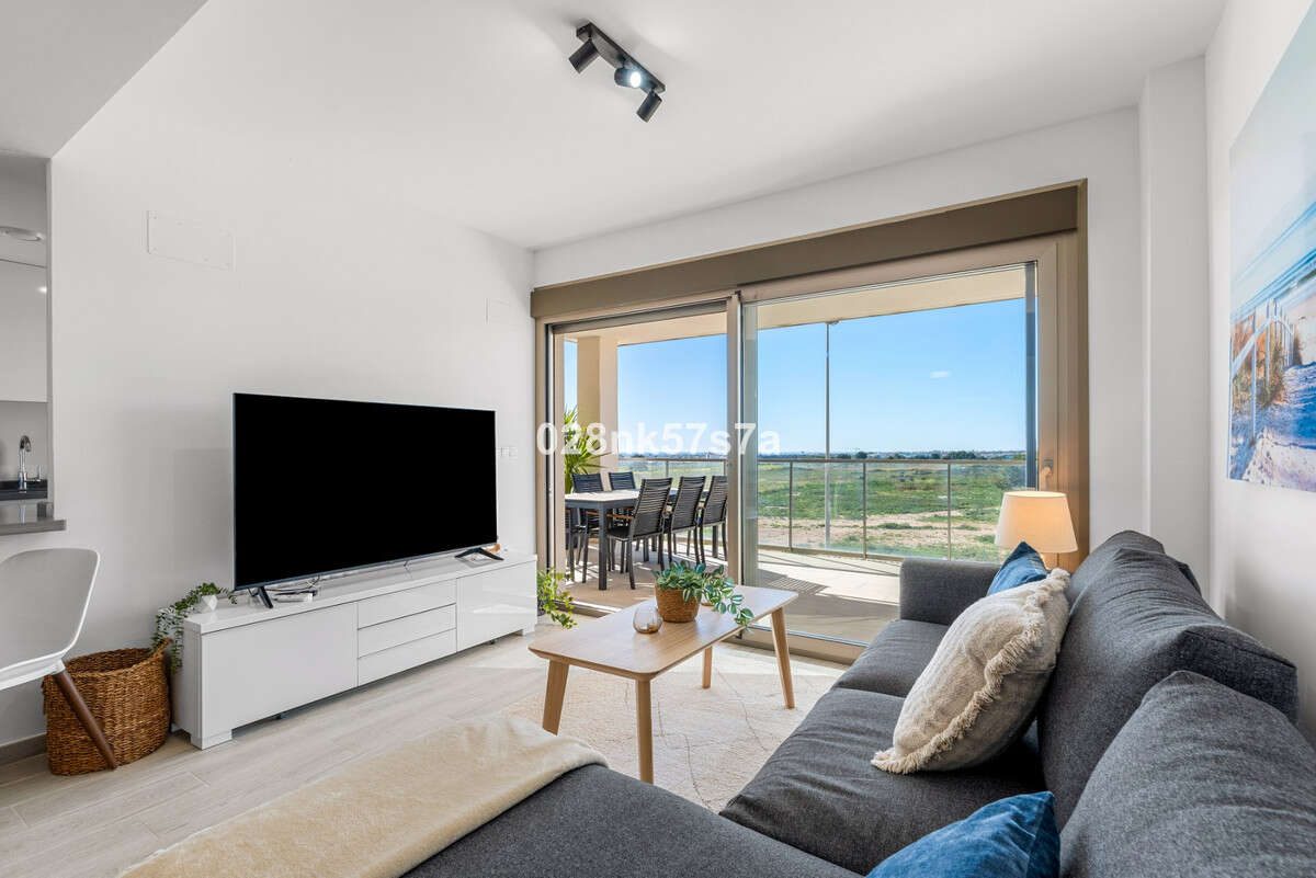 Here we have a modern and neat apartment on the 2nd floor with 2 bedrooms, 2 delicate bathrooms, spacious living room with open kitchen, and a large terrace outside the living room. The apartment is well equipped and is sold with furniture included in the price. South-facing with ideal sun conditions.There is a lift in the building and an underground garage with parking space and private storage room. You are within walking distance of a good selection of restaurants, cafes and the shopping center in La Zenia. If you want to go to the beach, you can cycle down in about 15 minutes. Otherwise, it is worth mentioning that there are three 18-hole golf courses nearby.