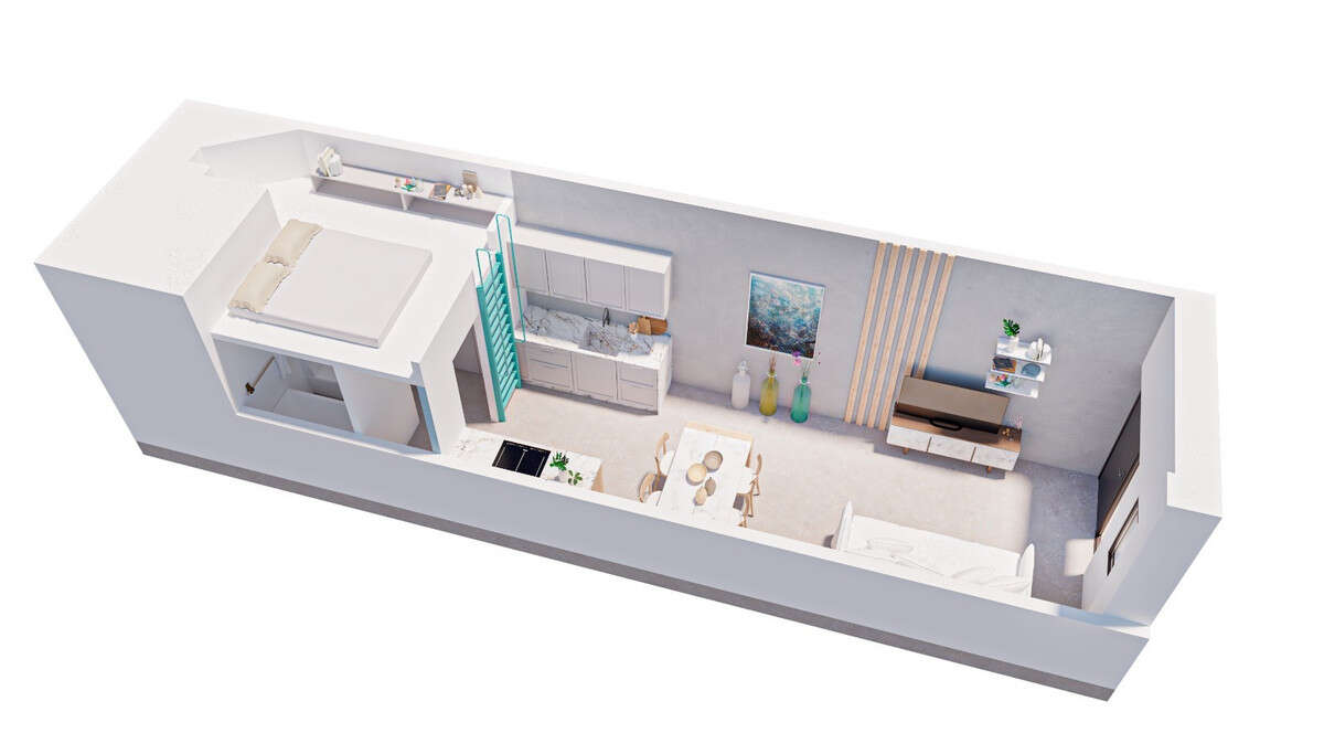 Each apartment includes a cleverly designed loft-style sleeping area for extra guests or family, and comes fully furnished with air conditioning installed.