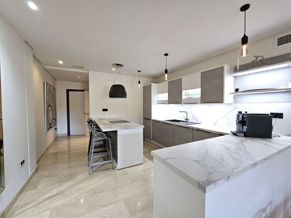 This freshly renovated 3-bedroom apartment sits on the middle floor of a sought-after beachfront complex, just a short stroll from Puerto Banús. Designed with modern living in mind, it features open-plan spaces, a sleek kitchen, and stylish updated bathrooms – all finished to a high standard for a relaxed, contemporary feel just moments from the sea. Sold with the benefit of a large underground parking space and a storage room.