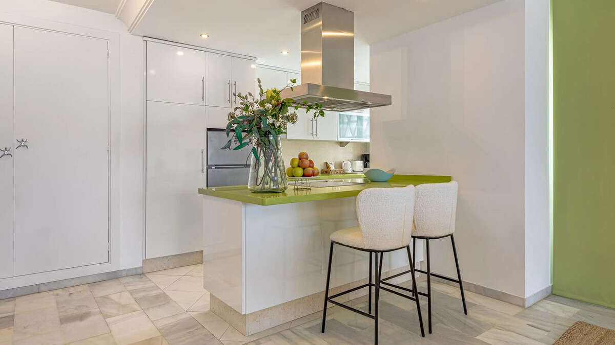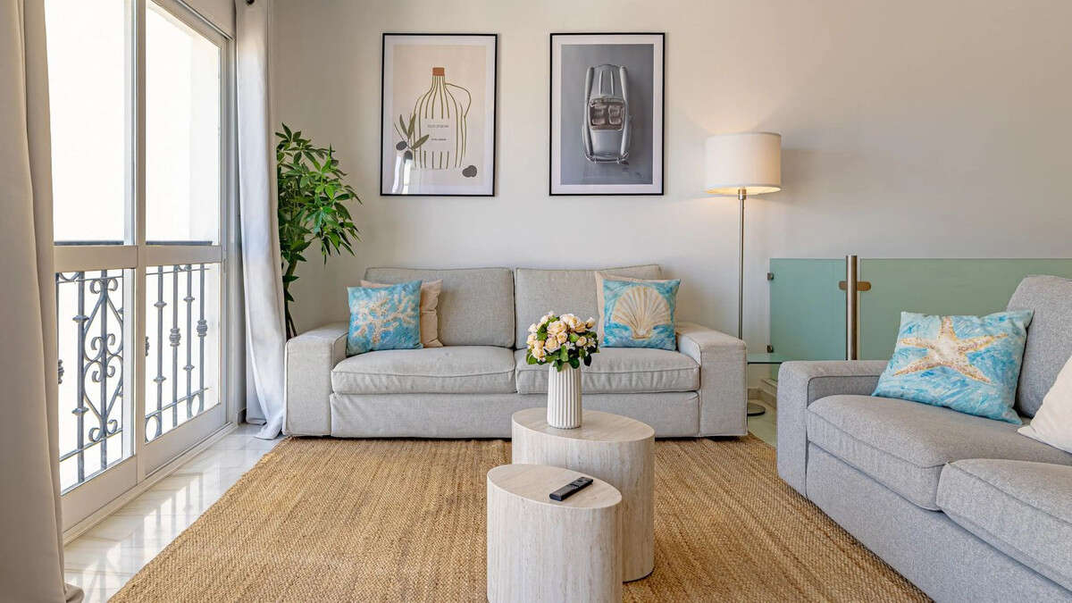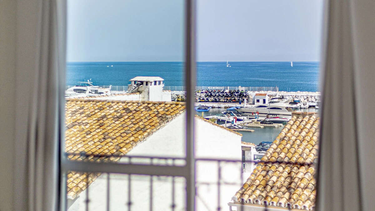 Modern duplex apartment in Puerto Banús with stunning sea views, just steps from the beach, restaurants, luxury boutiques, and all amenities. Featuring two bedrooms (one en-suite), two bathrooms—one with Jacuzzi—a fully fitted open-plan kitchen with breakfast bar, and a bright living-dining area. Finished in marble with new A/C units and satellite TV. The building offers concierge service, night security, and private underground parking.