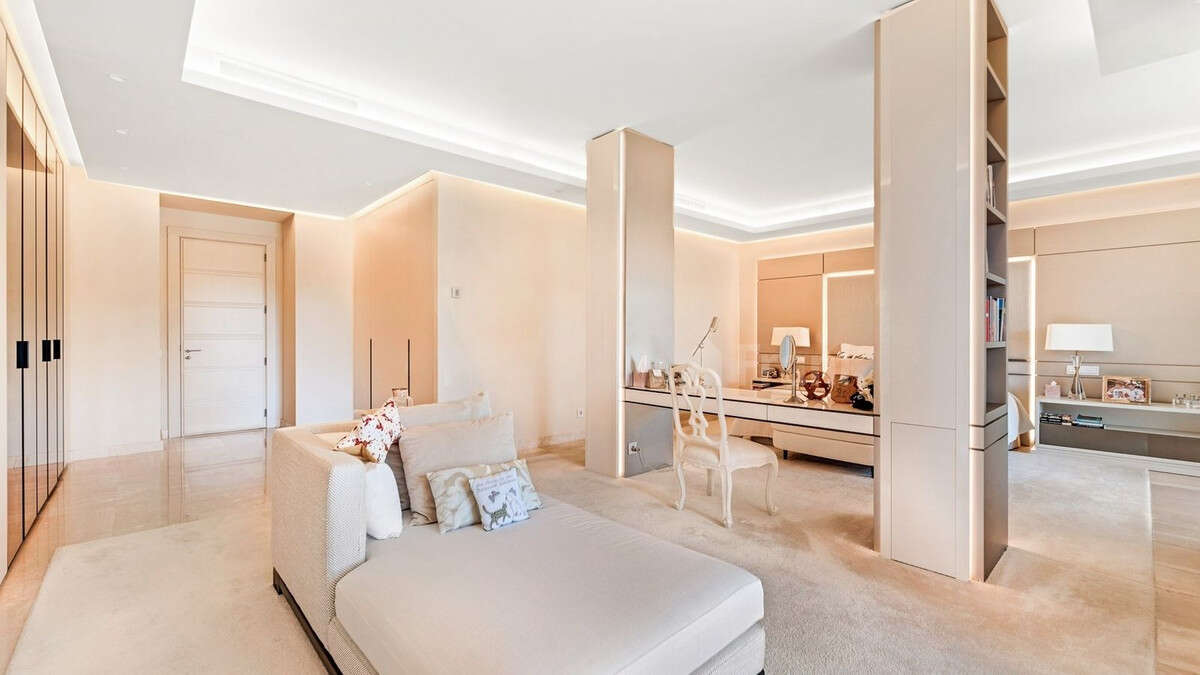 The property also includes five bathrooms and two very private terraces, perfect for both relaxing and entertaining, and offers exceptional natural light throughout the day. It was thoughtfully renovated five years ago with meticulous attention to detail, preserving the elegance and material quality that define the original architecture, while incorporating modern finishes in harmony with the overall luxury of the complex.