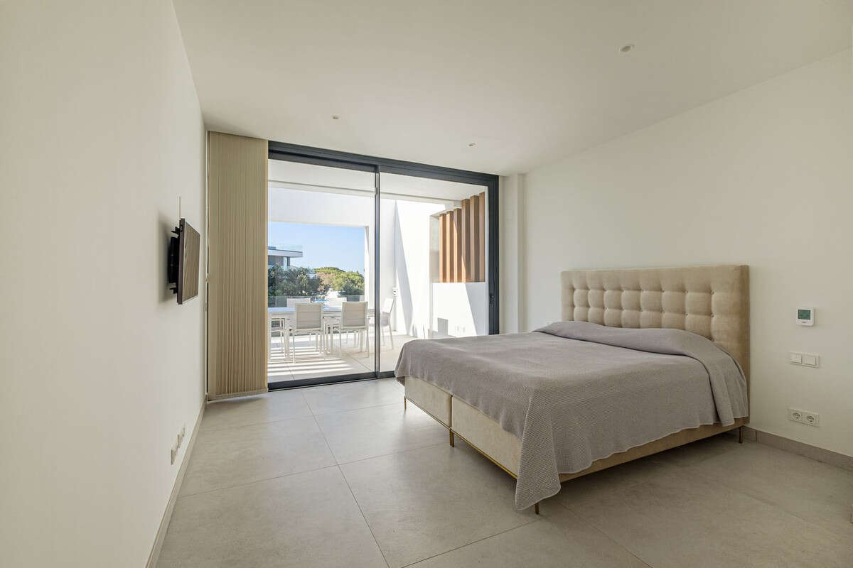 The living area opens directly onto a large private terrace offering views of the sea as well as of the beautifully designed community pool and gardens with wooden walkways and a tranquil water feature running the entire length of the urbanisation.