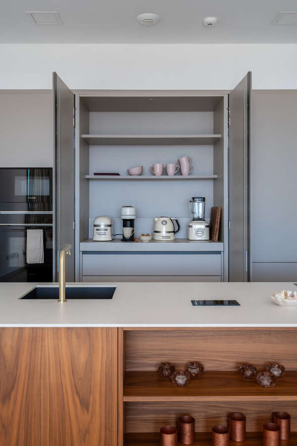 A generous, partly covered main terrace seamlessly extends the living space; enhanced with electric awnings for comfort on warm summer days and discreet heaters for cooler evenings. Beside the kitchen, a dedicated covered outdoor nook creates the perfect space for open-air cooking and memorable BBQ moments.