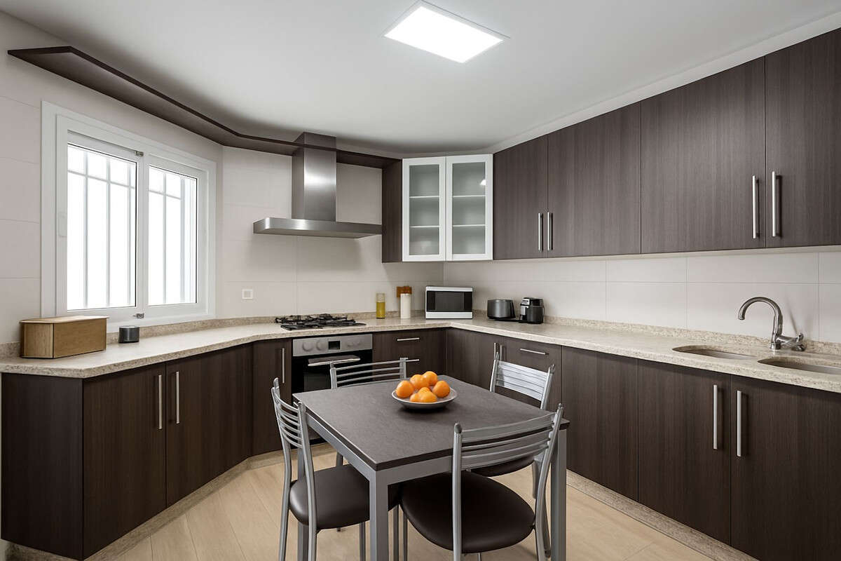 The property features an elegant entrance hall leading to a spacious and bright living–dining room, a fully fitted kitchen with utility room, 3 bedrooms (one with en-suite bathroom), and 3 full bathrooms. It also offers two terraces: one on the main floor and a spectacular rooftop terrace upstairs, perfect for a solarium or outdoor living space to enjoy the Mediterranean climate all year round.