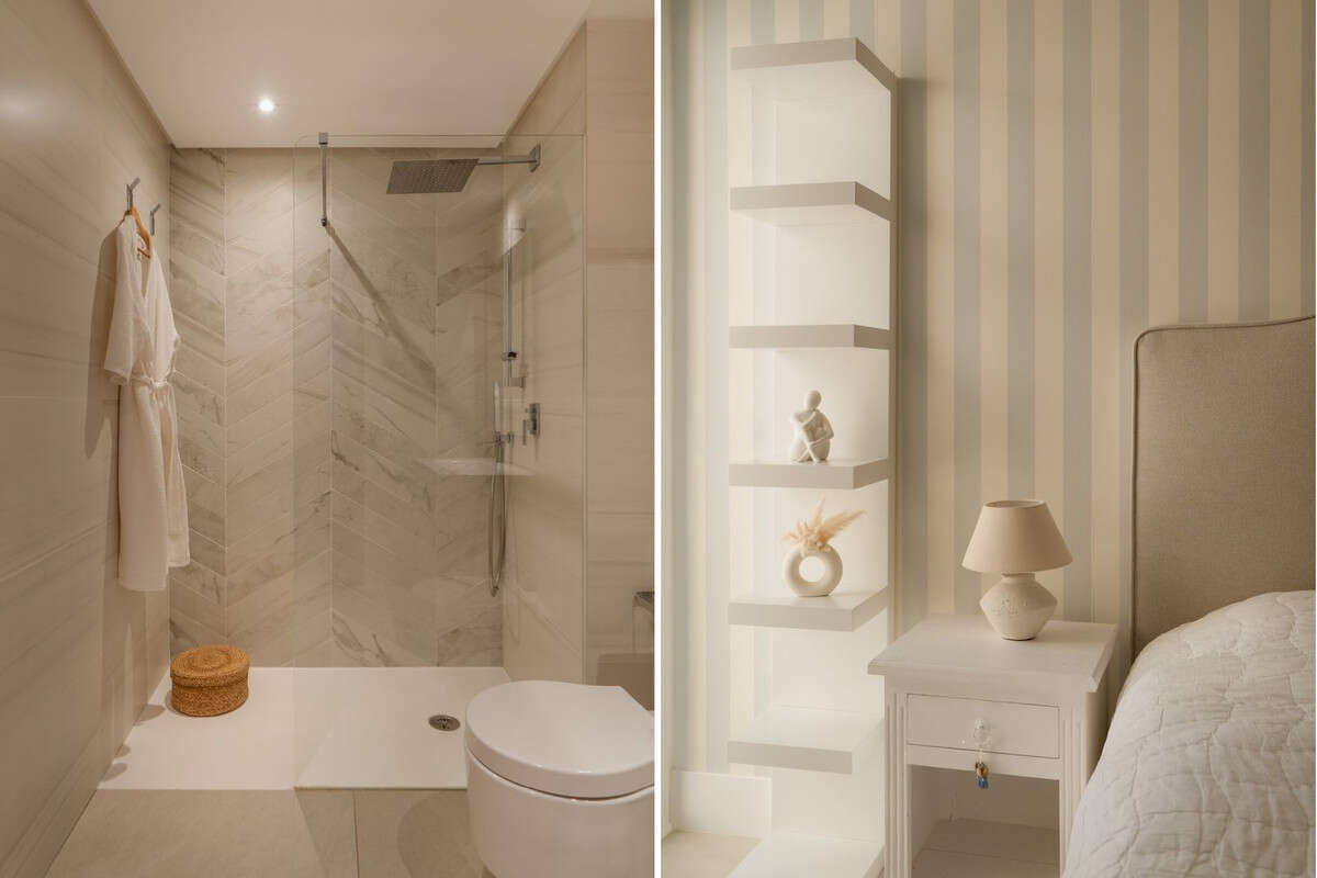 From the main living area, full-height sliding glass doors lead to a generous south-facing terrace. Open them completely to dissolve the boundary between indoors and out, or close them to form a sheltered, glass-fronted room with views stretching across the fairways to the Mediterranean. Privacy remains a subtle constant.
