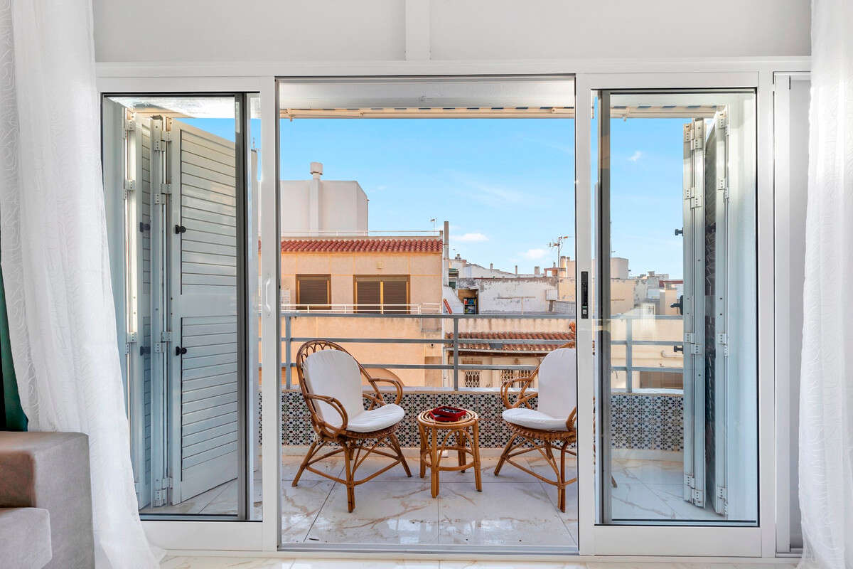 Spacious and bright renovated apartment in La Mata, located on the 4th floor with an elevator. It features 3 bedrooms, 1 bathroom, 1 guest toilet, a large living-dining area, and an open kitchen. With 76 m² built and a 5 m² northeast-facing terrace. Just 3 meters from the beach and 100 meters from the central plaza, close to restaurants and medical centers. Prime location!